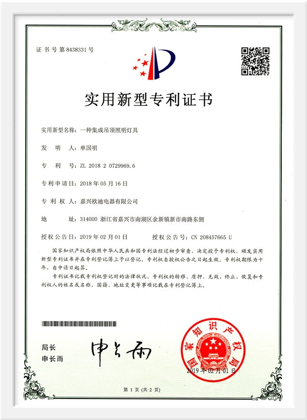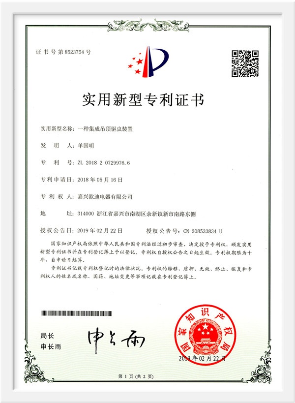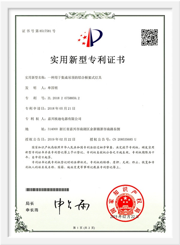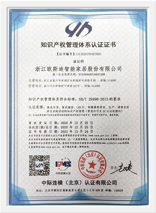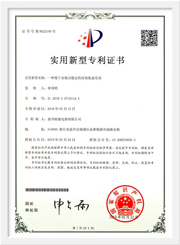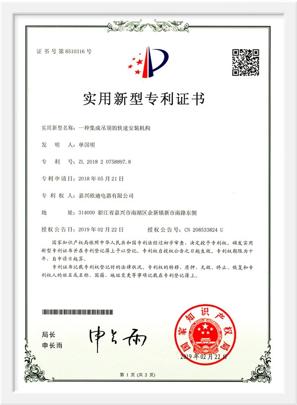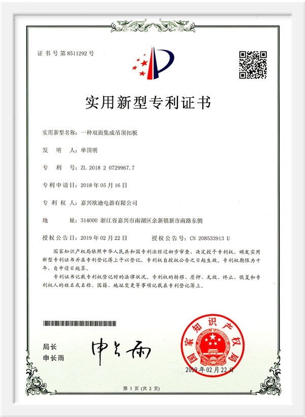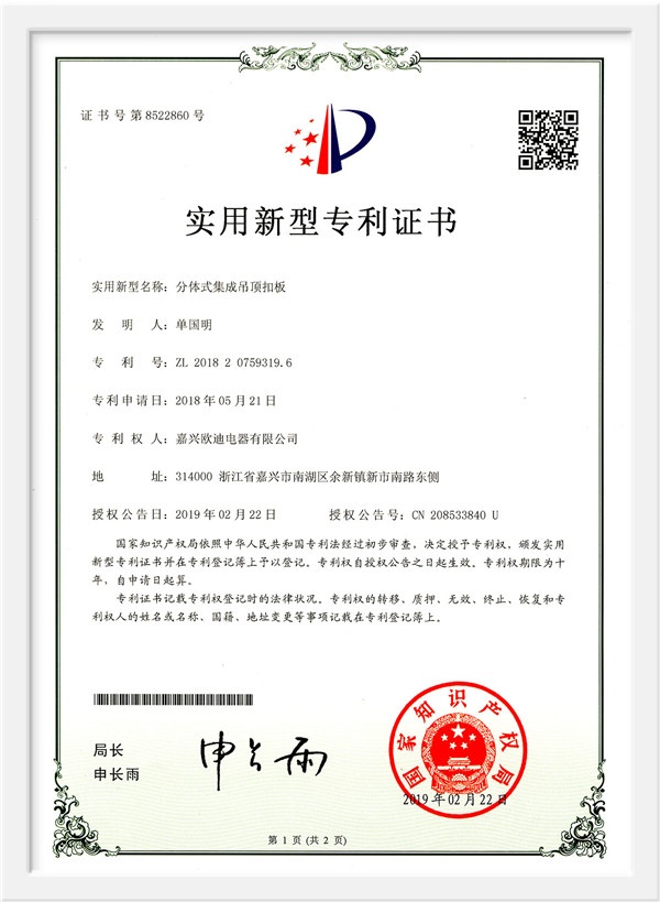 As a scientific and technological enterprise in Zhejiang Province, and an industry-university-research base in Jiaxing College, the products have passed the national 3C certification, the three-level enterprise of safety production standardization, Zhejiang Reliable Consumer Products, 49 national patent technologies. And successively won the honorary titles of China's building decoration industry promotion brand, China ceiling ceiling executive director unit, China ceiling industry outstanding enterprise, Tencent household environmental protection and health brand, China Building Decoration Materials Association Product Innovation Award, China integrated ceiling industry top ten new products, etc. , And won the "Top Ten Brands in China's Integrated Ceiling Industry" for ten consecutive years. In 2015, Huo Siyan, a film and television star, joined the company and passed CCTV's research and inspection in 2017. He successfully joined hands with CCTV to create a high-end smart home brand.