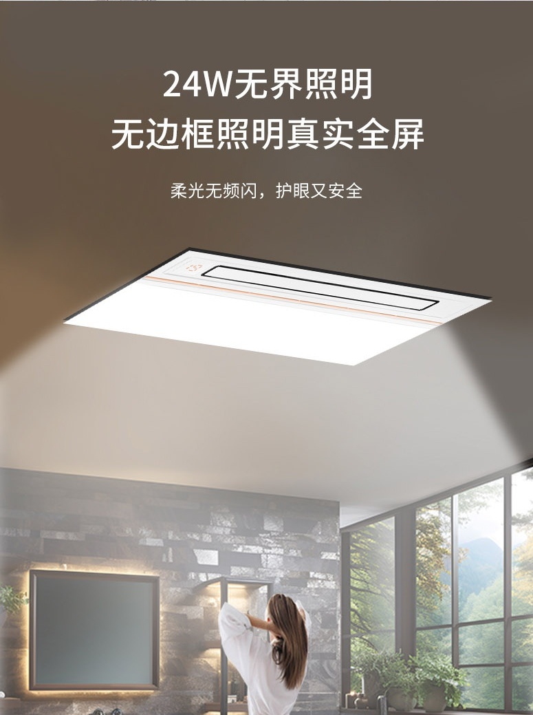 【簡約設計,百搭大氣】簡約大氣面板, 24W無框照明,能夠輕松融入各種浴室裝修風格,百搭又大氣。同時,操作簡單直觀,讓您的每一次使用都成為一種享受。