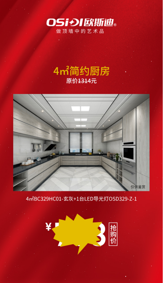 4㎡簡約廚房:4㎡BC329HC01-玄灰+1臺LED導光燈OSD329-Z-1